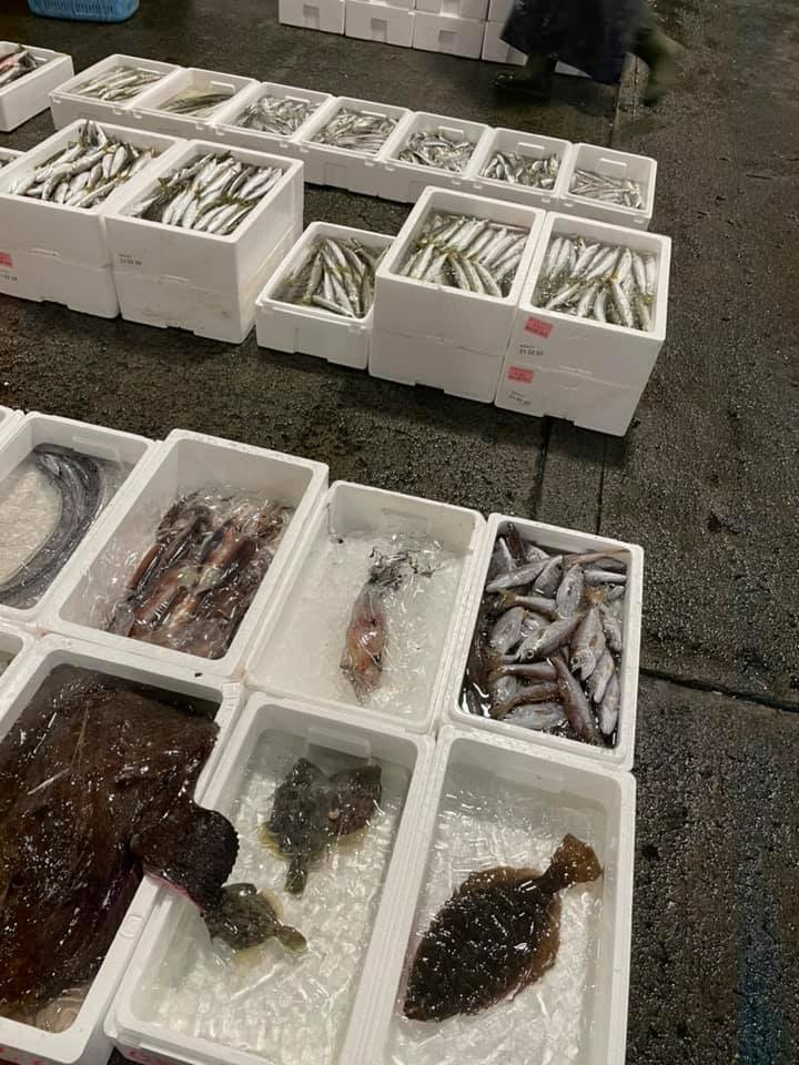 おはようございます😃 うまいもの市場です。 本日の小田原漁港水揚げ情報は するめいか、平目、ヒコイワシ、他少々です。 #うまいもの市場 #小田原 #魚 #魚市場 #漁港 #平目 #マンボウ #鮮魚