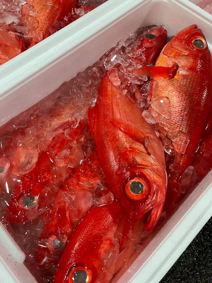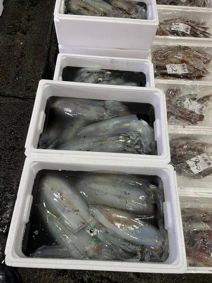 うまいもの市場です。 (南足柄のスーパーふるぎや鮮魚) 本日の小田原漁港水揚げ情報は あおりいか、赤いか、さば、ヒコイワシ、あじ、その他です。 今日は活魚の石鯛を競りで買いましたが、回収するときに指にヒレが刺さり負傷😨 ズキズキします🥺 #うまいもの市場 #小田原 #魚 #魚市場 #漁港 #鮮魚