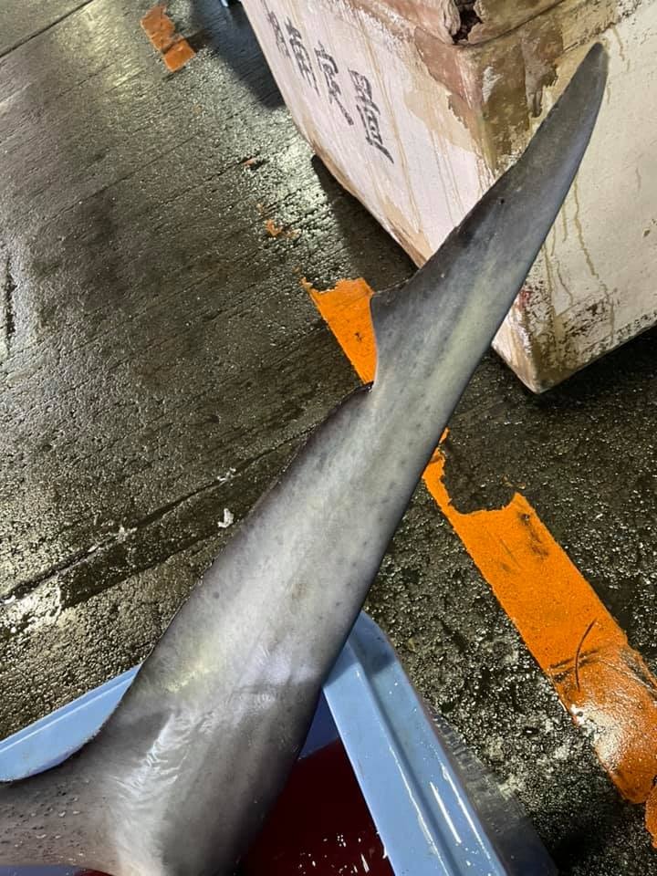 大きなサメが(3メートルくらい)いましたが、血水に浸かっていて写メは尻尾だけ🙄笑