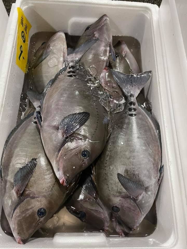 おはようございます😃 うまいもの市場の尾形です。 (南足柄市のスーパーふるぎや鮮魚) 本日の小田原漁港の水揚げは かんぱち、サザエ、うるめいわし、あじ、さば、ソウダガツオ、珍しい1kgのセミエビ。 1kgのセミエビは小田原では珍しい🧐 #うまいもの市場 #小田原 #魚 #魚市場 #漁港
