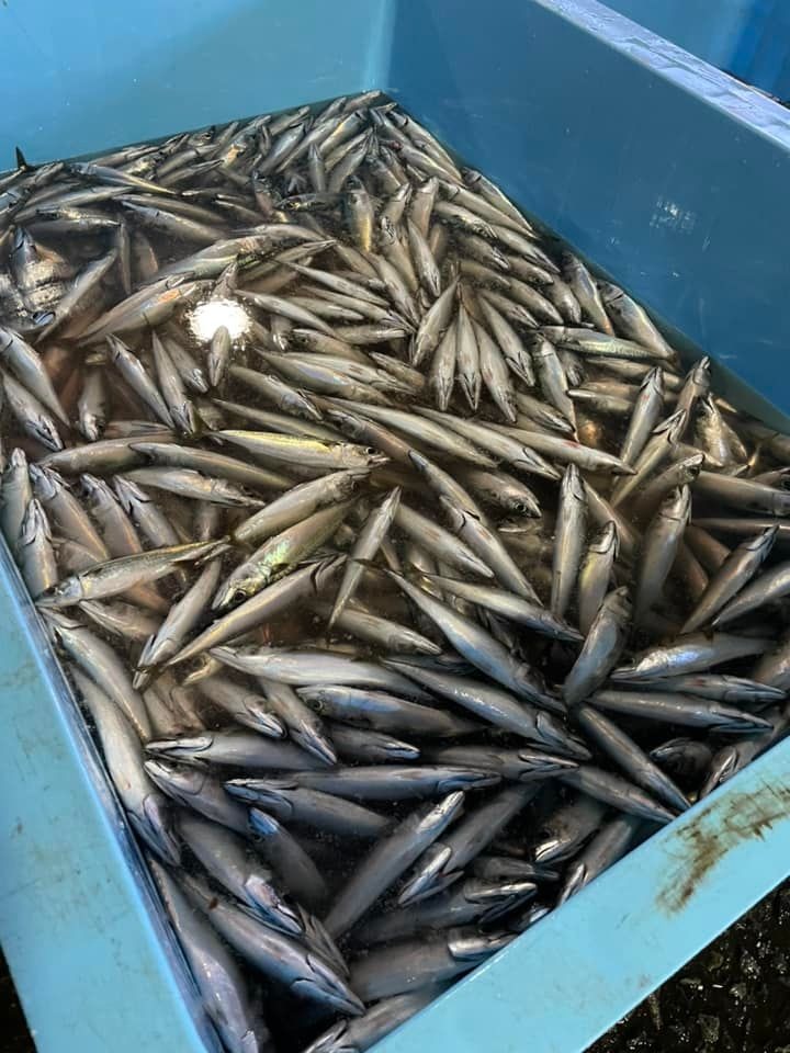 サバ、水カマス、うるめいわし、小むつ、小ソウダガツオ、その他少々です。