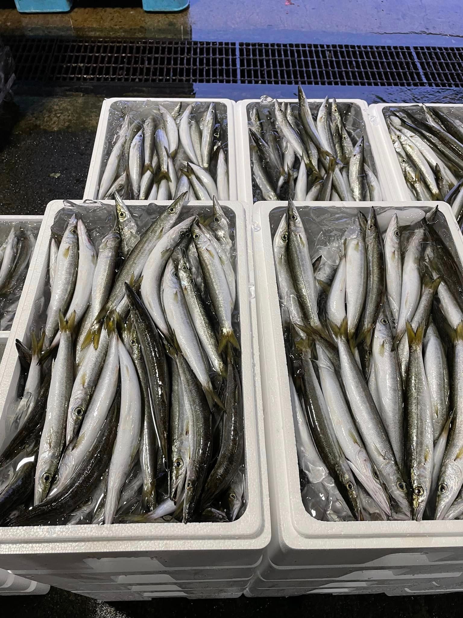 おはようございます😃本日の小田原漁港の水揚げは水カマス、あじ、ショウゴ、白鯛、小サバ、他少々です。#うまいもの市場 #小田原 #魚 #魚市場 #漁港 #小田原魚市場