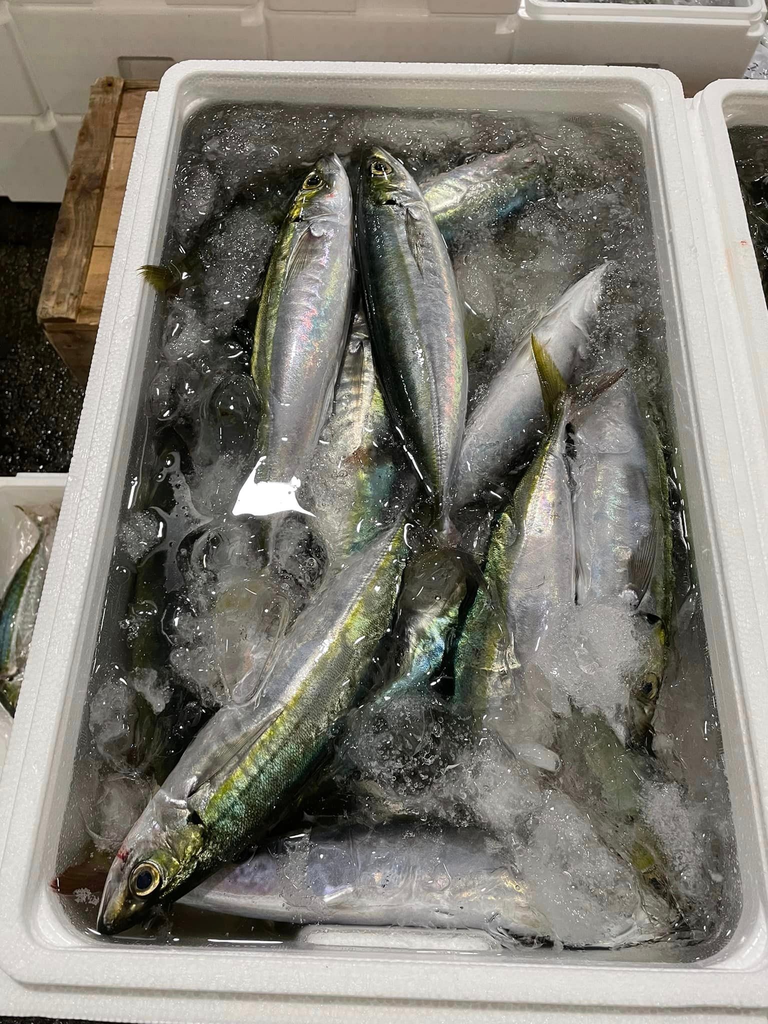 おはようございます😃本日の小田原漁港の水揚げはうるめいわし、イナダ、カマス、全体的に少ないです。久しぶりにおしつけが入荷します。#うまいもの市場 #小田原 #魚 #魚市場 #漁港 #小田原魚市場