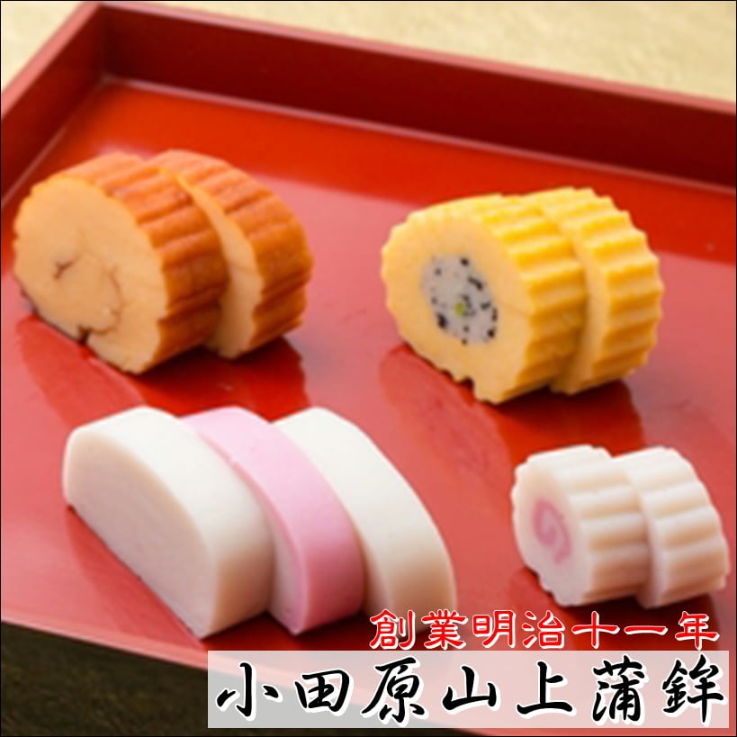 かまぼこギフト雅G-8(極上)【創業明治十一年・小田原山上蒲鉾】極上蒲鉾(白2本赤1本)・特上伊達巻1本・黄味巻1本・姫なると巻1本【冷蔵便】
