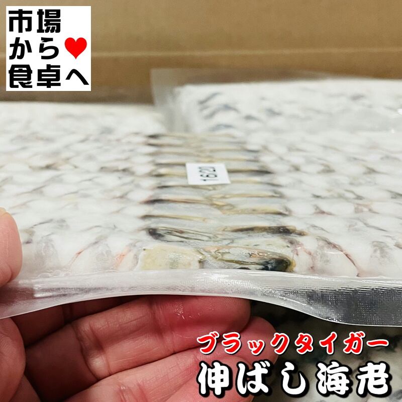 伸ばし海老 ブラックタイガー海老 1箱10パック200尾入り(1パック20尾入り)【業務用・サイズ16/20】天ぷら、フライに簡単調理【冷凍便】