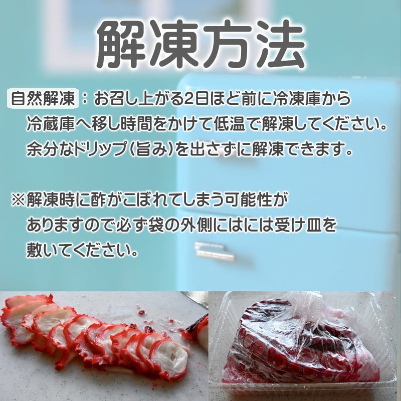 ※食べ切れない場合は酢は捨てずに保存袋に蛸がおおわれるぐらいに入れて凍結してください。