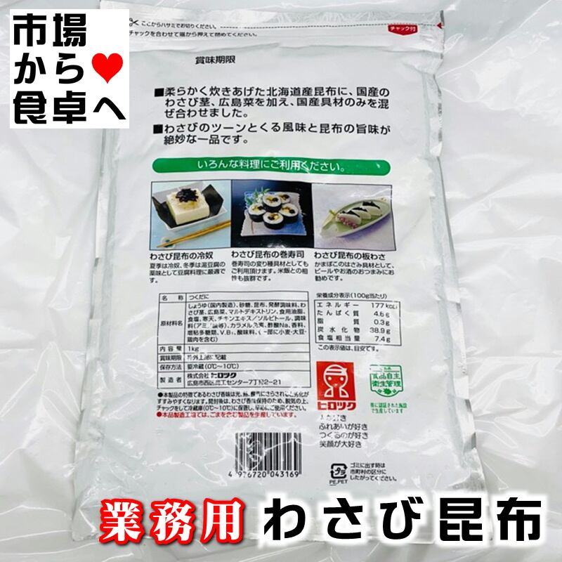 わさび昆布 1kg 業務用 北海道昆布使用【 あったかご飯のお供・のり巻・やっこ・おにぎりに】わさびのツーンとくる香味と昆布のうま味が絶妙です【冷蔵便】