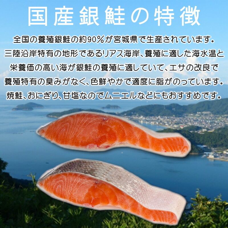・原材料名:銀鮭(宮城県産養殖)、食塩/酸化防止剤(V.C)