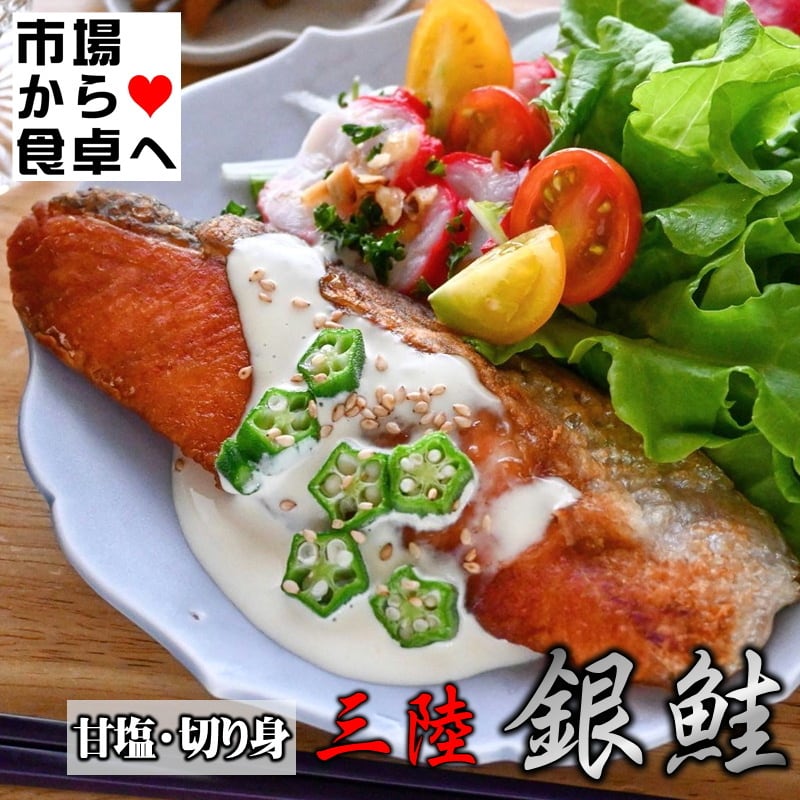 銀鮭切身 (甘塩) 10切れ(1切れ約100g)【三陸産原料使用】手切り、脂あります。国産原料熟成銀鮭【冷凍便】