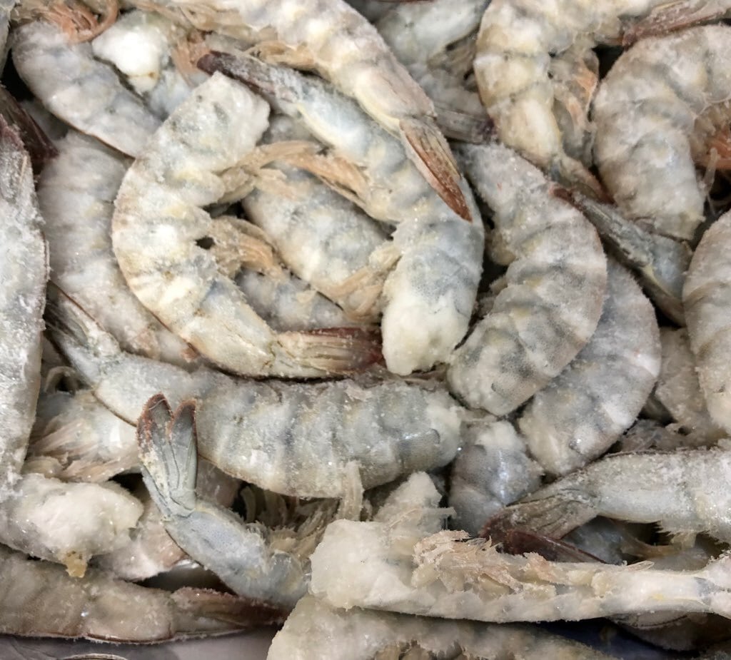 桶等に海老のブロックを入れてブロックが隠れるくらい