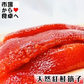 原材料:べにさけすじこ(アメリカ合衆国産)、食塩、粉末水飴/調味料(アミノ酸等)、酸化防止剤(V.C)発色剤(亜硝酸Na)