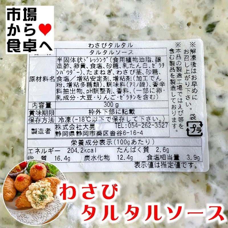 わさび タルタルソース 2本 (1パック・300g) 【わさび のツンとした 辛味、香りが良いです】 揚げ物や野菜のディップなどに【冷凍便】