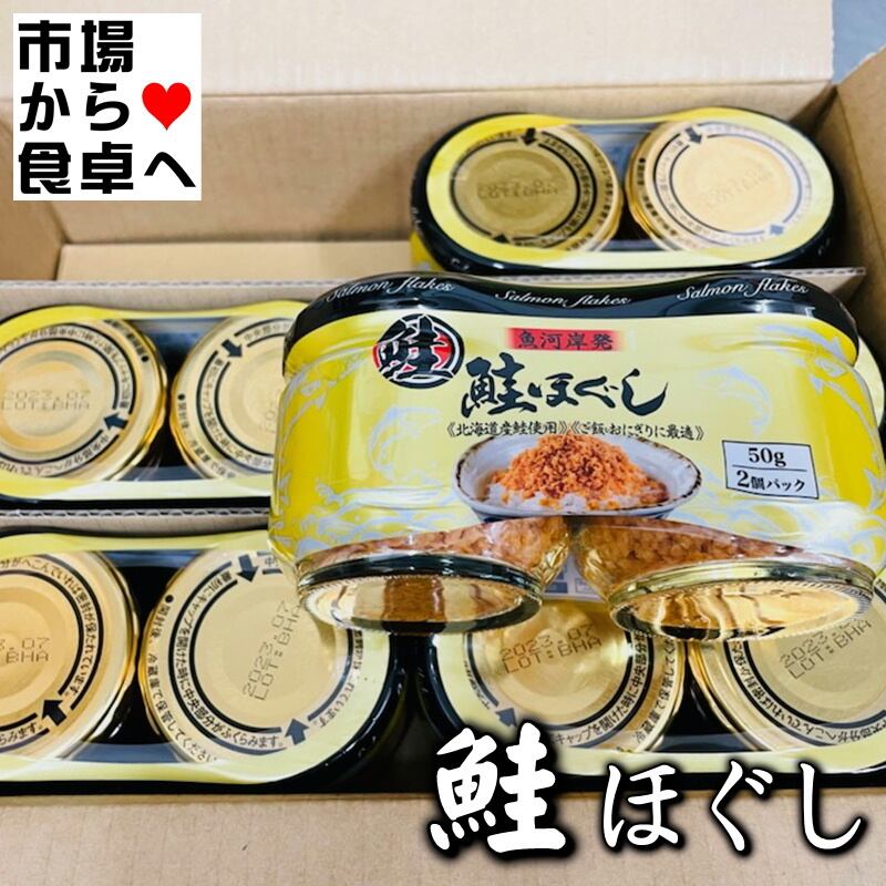 鮭ほぐし 2個パック×24(48個入り1個50g)【金ラベル鮭フレーク・国産鮭を使用】おつまみ・あったかご飯に・パスタ・おにぎり・鮭マヨネーズでサラダ、パンにも【常温便】