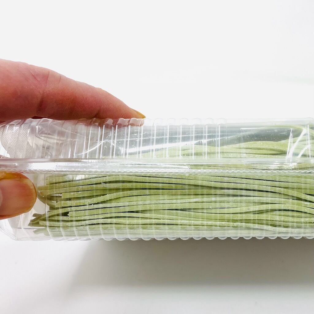 原材料名:めん(小麦粉(国内製造)、そば粉、食塩、やまいも、わさび粉/加工澱粉、プロピレングリコール、酒精、クチナシ色素、(一部に小麦・そば・やまいもを含む))