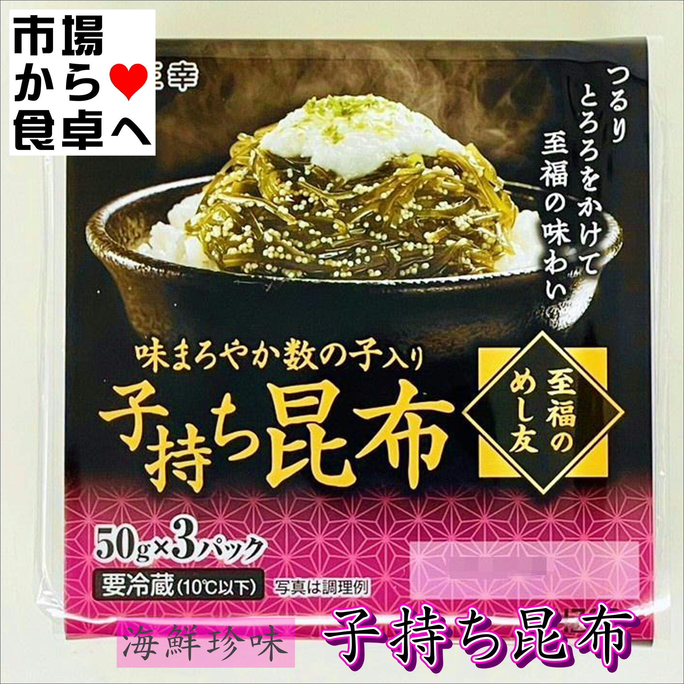 子持ち昆布 6パック(1パック3個)【至福のめし友】味まろやか数の子入り、よろろをかけてさらに美味しく。【冷蔵便】