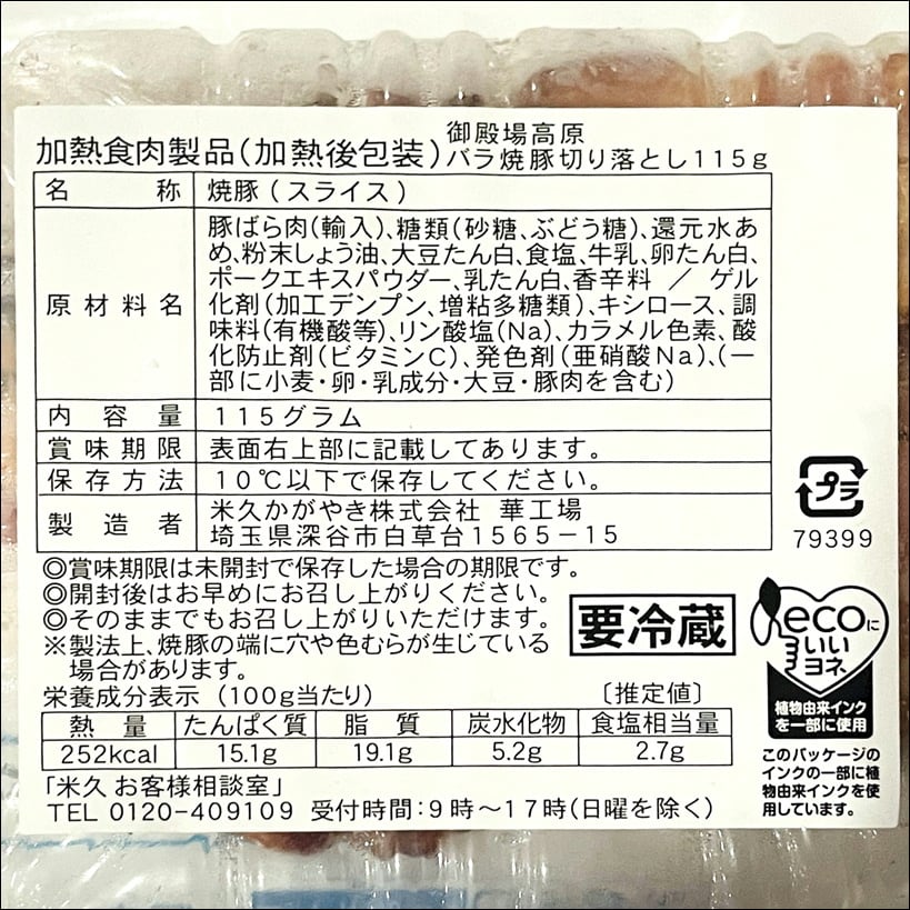 原材料名:一部に小麦、卵、乳成分、大豆、豚肉を含む