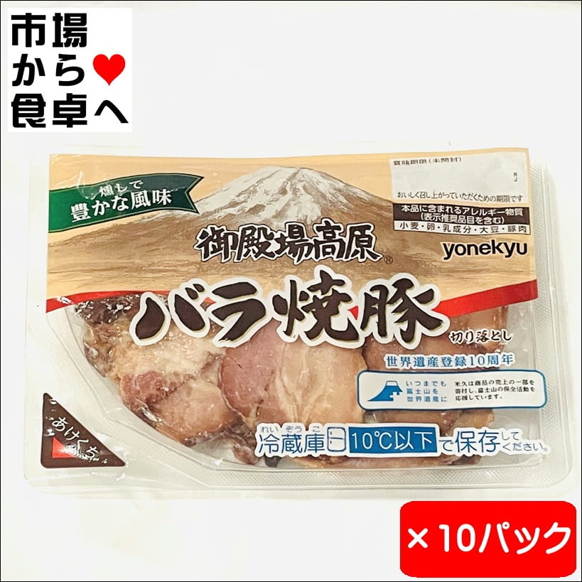 焼き豚 10パック【御殿場高原バラ焼豚】燻しで豊かな風味、おつまみ、ラーメン、チャーハンなどで【冷蔵便】
