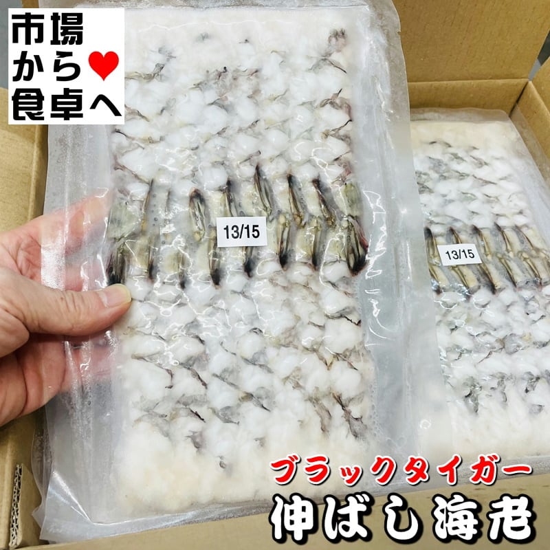 伸ばし海老 ブラックタイガー海老 1パック15尾入【業務用・サイズ13/15】天ぷら、フライに簡単調理【冷凍便F】