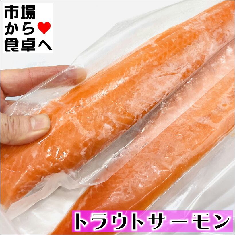 トラウトサーモンロイン 約900g【血合い無しサーモン刺身用】 お刺身・カルパッチョ等でお召し上がりください【冷凍便F】