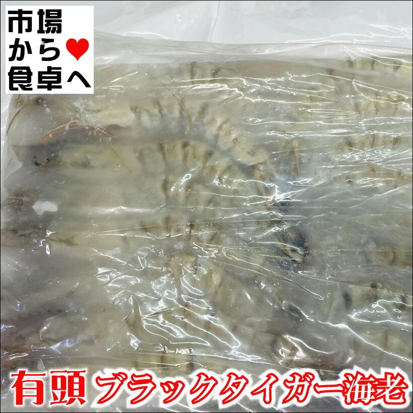 有頭ブラックタイガー海老 小1.3kg(50尾)【鮮度維持ブロック凍結】業務用、パエリヤ、炒めもの・揚げ物に【冷凍便】