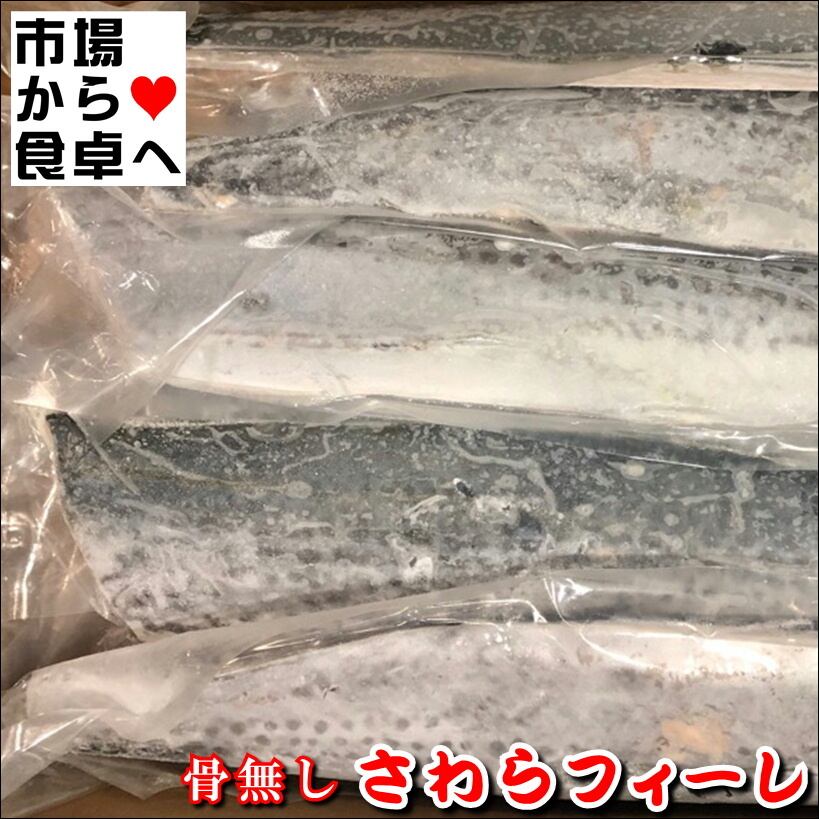 さわらフィーレ 10kg入り(半身800g~1kg)【業務用サワラ半身】腹骨取り、皮付き、3枚おろし【冷凍便】